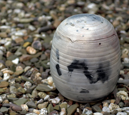 Meine Urnen sind handgefertigt, aus Steinzeugton auf der Töpferscheibe gedreht, mit farbigen Tonen oder Steinzeugglasuren versehen oder mit brennbaren Materialien in einer Kapsel gebrannt.